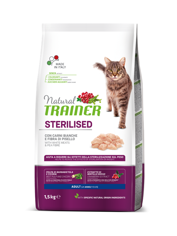 Gatto Sterilised Adult con Carni Bianche Natural Trainer 1,5Kg