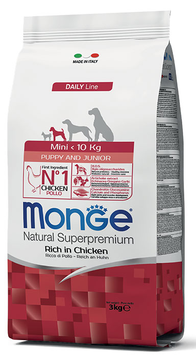 Le crocchette Monge Natural Superpremium Mini Puppy & Junior con Pollo sono un alimento completo per cuccioli di piccola taglia.
